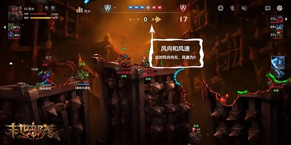 3、游戏内设有风向与风速的设定,每个战斗回合的风向和风速都可能发生改变。我们在绘制抛物线时,也需要结合风向和风速的因素来测算炮弹的落点,稍有疏忽就可能出现打偏的情况。顺风时抛物线的落点会更靠前,逆风时抛物线的落点则会更靠后,还请各位牢记这一点。