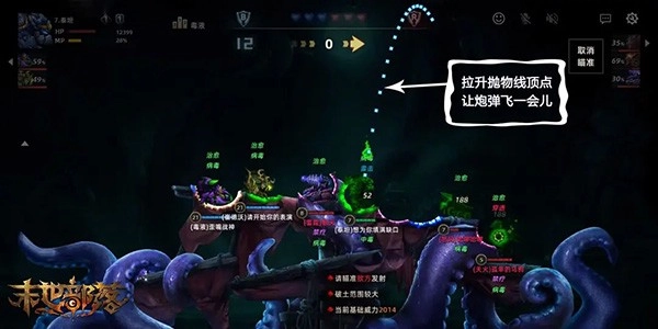 4、炮弹的飞行时长和其威力呈正比关系,因此在发射炮弹时,我们应在确保能瞄准目标落点的前提下,尽可能提高抛物线顶点的高度,延长炮弹的飞行时间,这样炮弹下落时的威力也会随之增强,从而造成更严重的伤害。