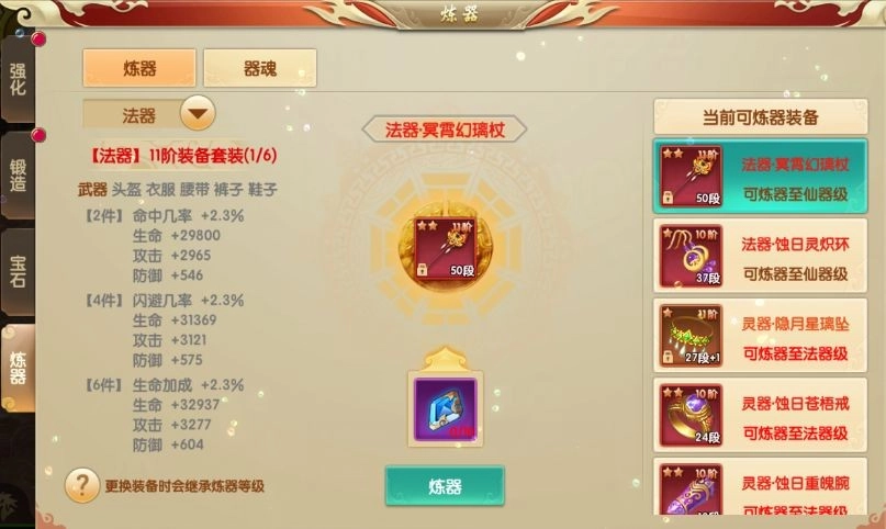 3. 炼器等级必须从低到高逐级提升,10件装备必须全部提升至同一炼器等级才会开放下一级的炼器;