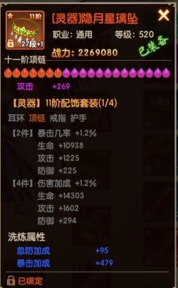 4. 当穿戴的装备满足属性相同、炼器等级一致、品阶相同且套装类型相同时,即可激活套装属性。