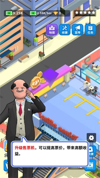 2、进一步升级售票机,通过售票机提升票价,助力玩家获取更高收益;