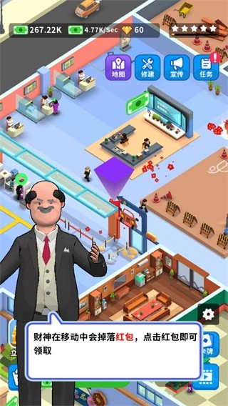6、财神移动过程中会掉落红包,玩家需点击红包方可获取金钱;
