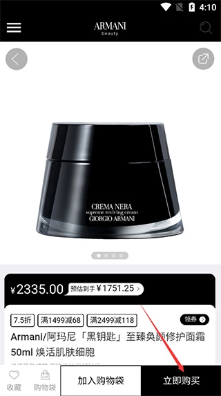 2、在页面中挑选商品后,点击下方的立即购买。