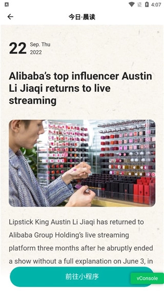 1、进入丹尼每日听力,软件为你提供国外新鲜英文报道以及精选内容