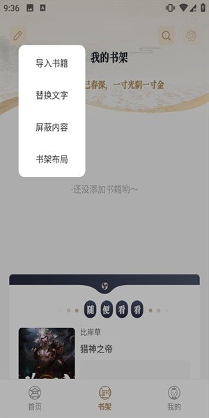 2、点击正下方的书架,在书架这里点击左上角的笔,这里可以选择导入书籍