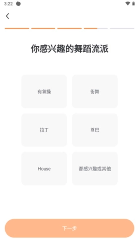 用户在练习舞蹈前可以先进行舞蹈风格的选择获取舞蹈教学视频进行学习。