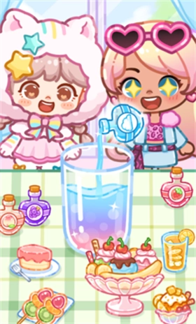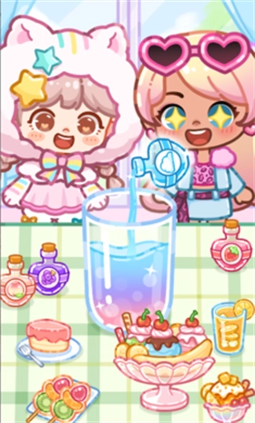 2、玩家能够自由调配色彩缤纷的果汁,像清爽多汁的西瓜汁、酸甜可口的橙汁,还有充满梦幻感的蓝莓汁都可以随心搭配!
