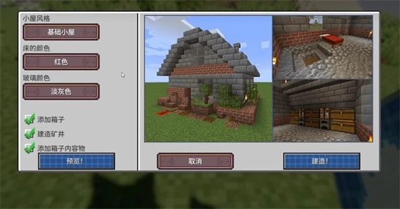 2、开局可用初始物资里的小屋直接获得庇护所,其中有许多的类型供我们选择,选好类型后可以点击建造,能通过预览来选择合适的建造地点。