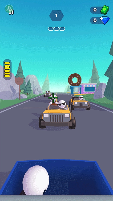 《街口枪战》是一款卡通风格的射击对抗游戏,英文名为Rage Road。游戏采用简约的画风与丰富多样的玩法,能让玩家在体验过程中收获独特的射击乐趣。在玩法设计上,游戏操作十分简单:玩家需操控汽车前进,同时使用武器射击敌人,待场上所有敌人被消灭后,即可赢得胜利并获得奖励。这些奖励可用于升级汽车和武器,助力玩家更轻松地应对后续战斗。