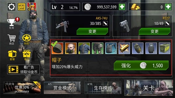 5、启用生存模式,在此模式中,你需要使用所有可用武器进行射击,直至时间结束。