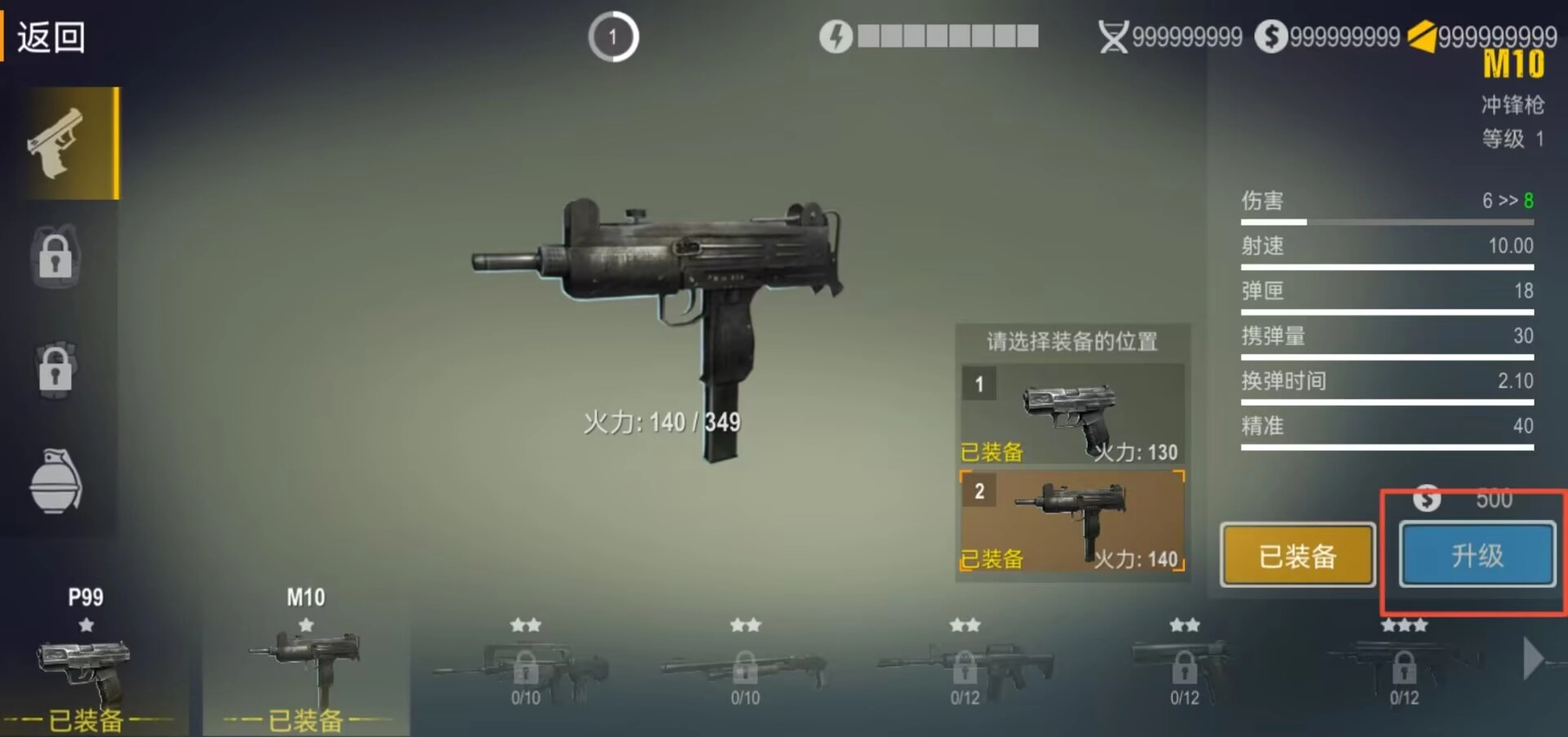 进入游戏主界面后,点击“装备”选项,此时右侧会呈现当前武器的属性信息以及升级按钮,只要消耗对应的金币,就能完成武器强化的操作。