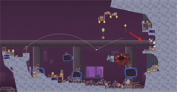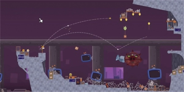1、进入boss关卡后,第一步要在左侧拉动弹弓,把白色小鸟发射出去,其飞行的抛物线和图中所示一致。