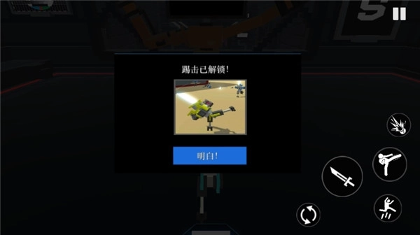 在机器人角斗场中,我们不仅可以用刀剑对砍,还可以使用腿来踢敌人,将其击倒后可以更方便击杀。