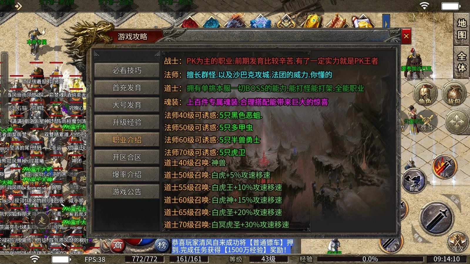 3、道士:拥有单挑本服一切BOSS的能力,能打怪能打架,全能职业!