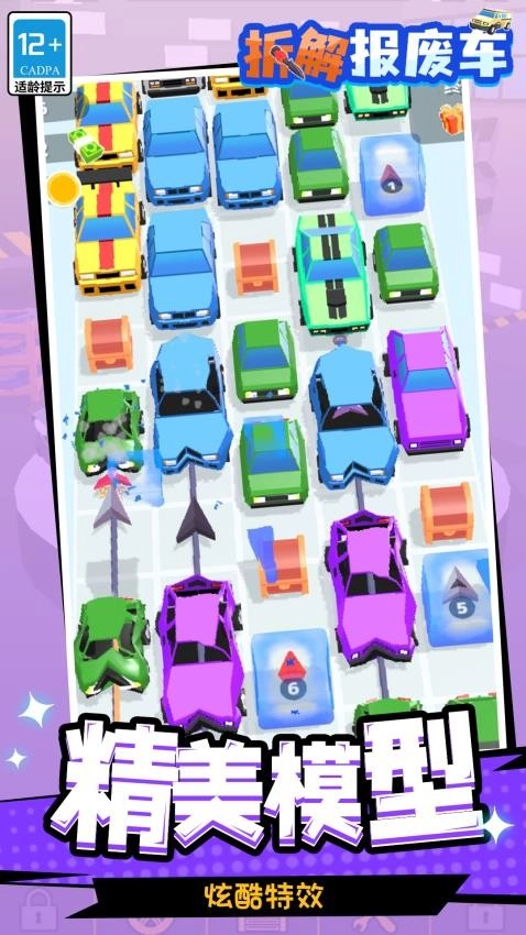 拆解报废车游戏是一款超解压的休闲游戏,玩家要驾驶装有特殊发射器的汽车,在堆满报废车辆的巨型工厂里穿梭,借助精准操作,朝锈迹斑斑的报废车射出特制箭头,依靠强劲拉力和巧妙角度,把车身拆成零散部件,在金属碰撞与拆解的过程中,成为最厉害的废车处理大师。