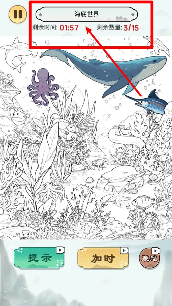 1. 倒计时机制带来的挑战:画面顶部会呈现当前剩余时长和目标数量,玩家要在规定时间内完成找茬任务,以此增添紧张刺激的体验。