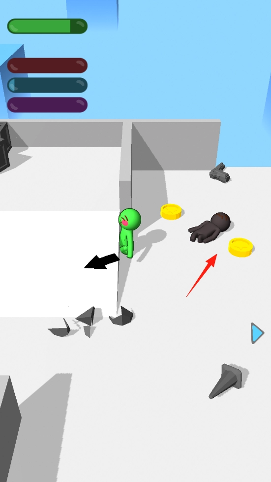 3、包含墙体、障碍物尖刺、球体、金币等元素,在战斗过程中能够借助地形实施穿墙、绕掩体等策略来进行对战。