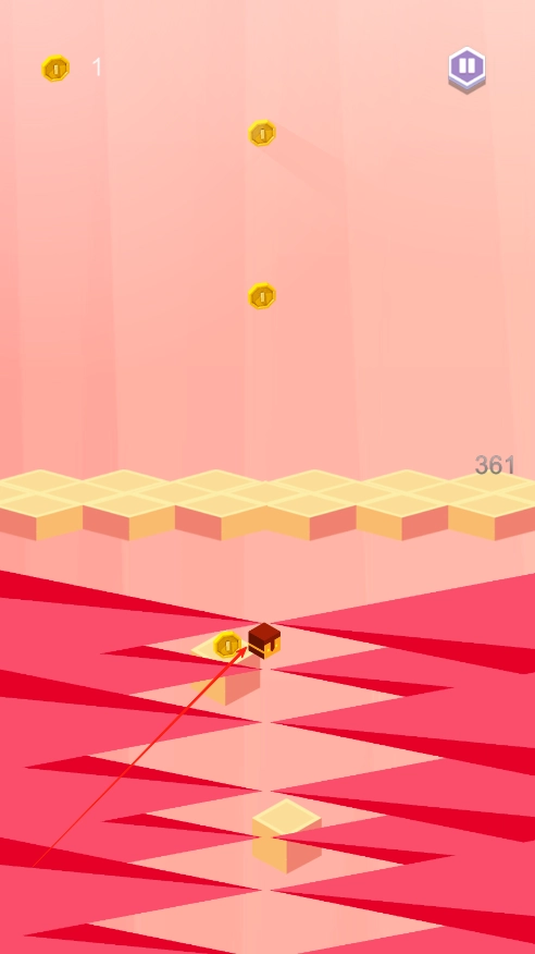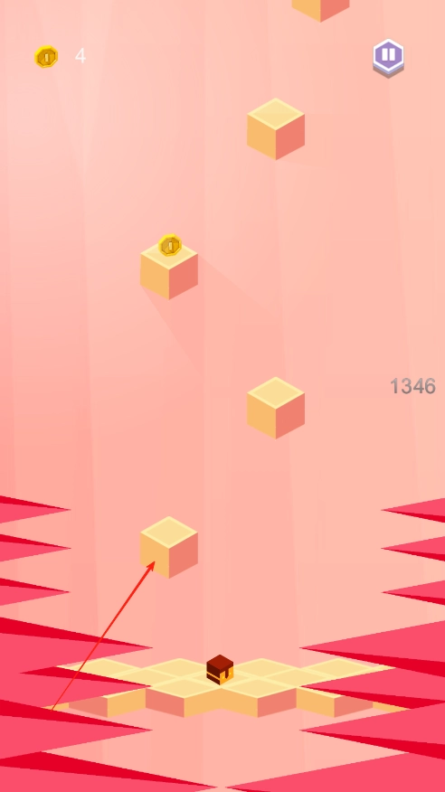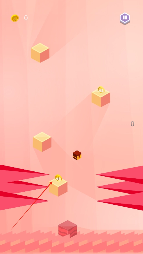 3、游戏是无限模式,爬得越高,记录越高,向上跳跃的过程中注意收集金币,金币可以在赛后购买小方块皮肤。