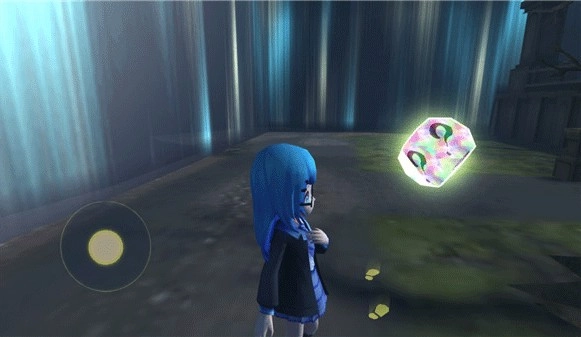 3、进入游戏后,通过滑动屏幕调整视角,触控虚拟摇杆控制人物移动方向;