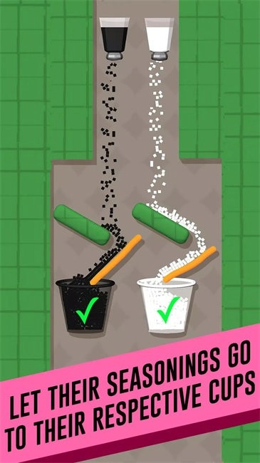 3.这是一款轻松有趣的休闲小游戏,在经历一番曲折操作后,只需把盐和胡椒放置到指定区域即可完成目标。