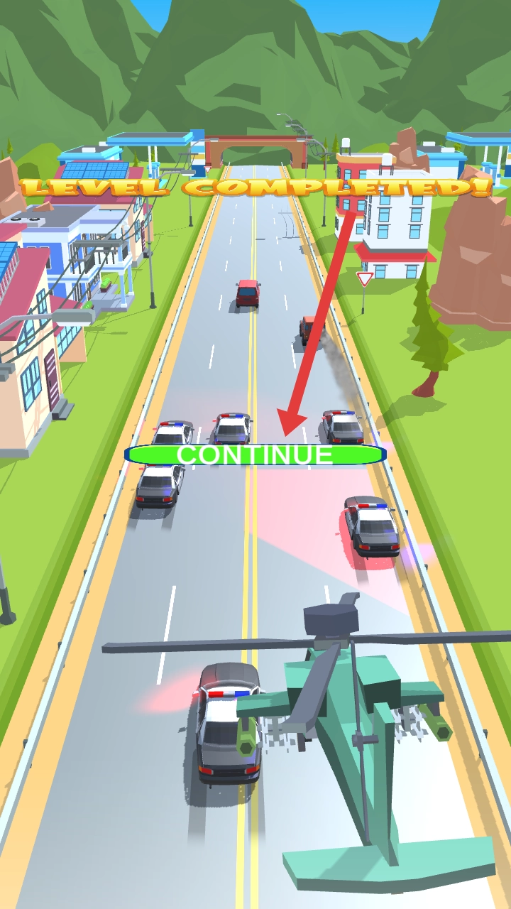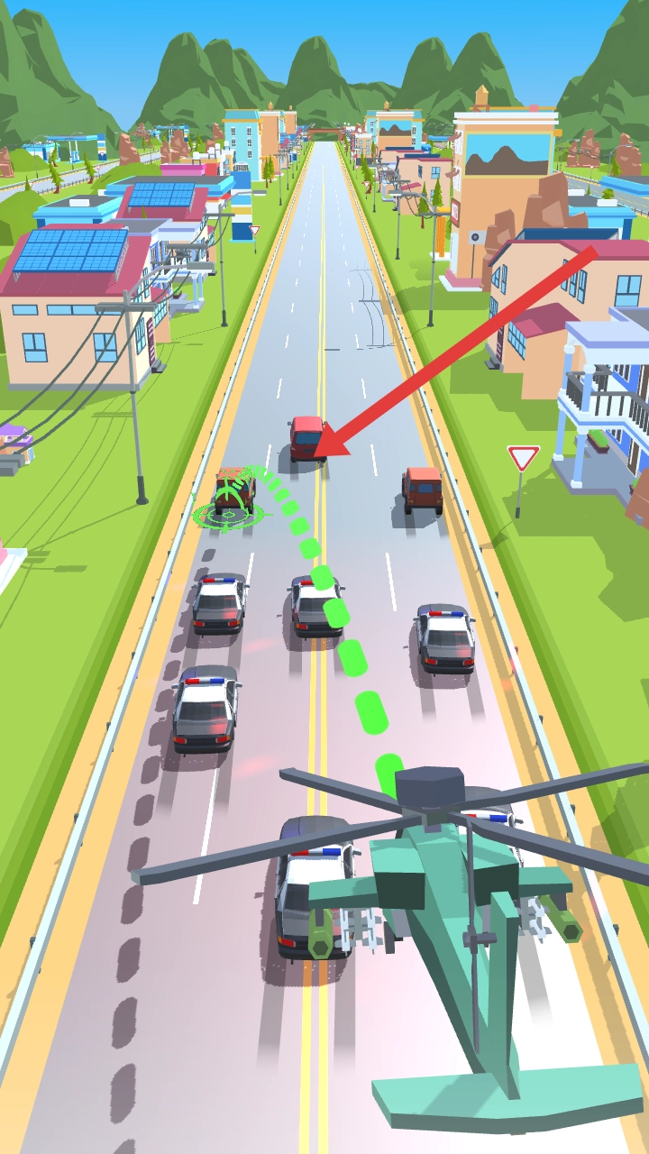 在操控直升机发起攻击时,要留意瞄准箭头所指的追捕区域,通过制造障碍来防止车辆逃脱追捕。