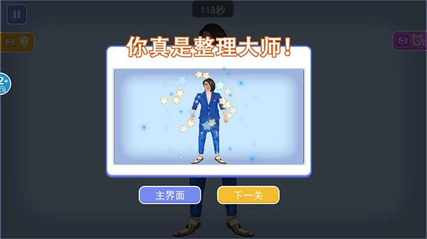 收纳高手合集中收录了各类经典收纳场景,每个关卡都经过精心打磨,还为玩家提供了多种解题思路去探索。玩家要在关卡限定时间内,把场景里杂乱的物品整理得井然有序;或是在那些看似和收纳无关的场景中,通过巧妙的方式达成游戏目标——比如利用场景里的道具为切尔西化妆,将他打造成惊艳的蓝色妖姬。