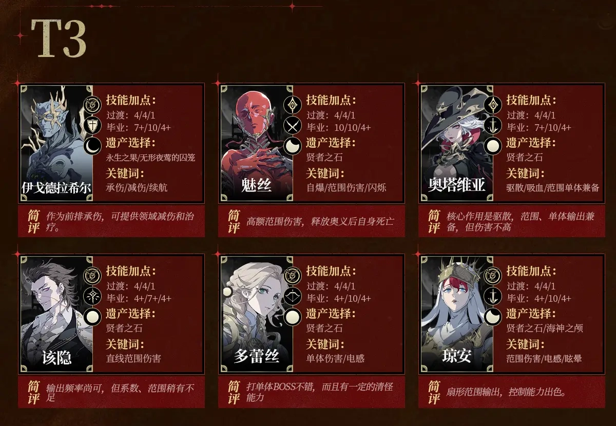 T2为强度不错的眷属(含部分体系、功能型眷属),可用于过渡或T1下位替代;