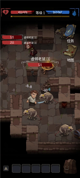 3、当敌人发起攻击时,你的血量会随之减少,这种情况下就需要饮用药水来恢复血量。