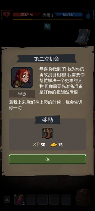 6、第2关我们要持续向上移动,途中会遇到一个小女孩,和她对话后就能获得鞋子。