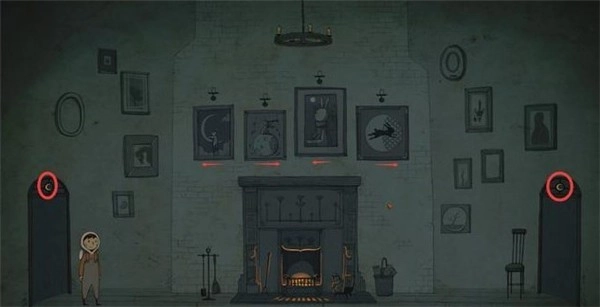 2、迷失方向:在壁炉与挂画之间往返20次(仍为第三关,不过和上一个成就的要求相反。需要观察墙上的画以及门上月亮的图形,找到月亮图形对应的画上兔子所指的方向后,选择走相反方向的门,重复20次就能解锁该成就。)