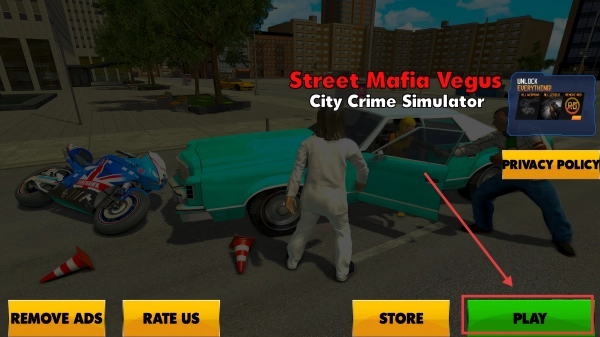 1、进入游戏,点击【PLAY】开始街头冒险,投身犯罪模拟挑战吧。