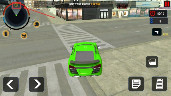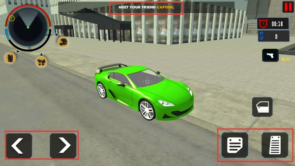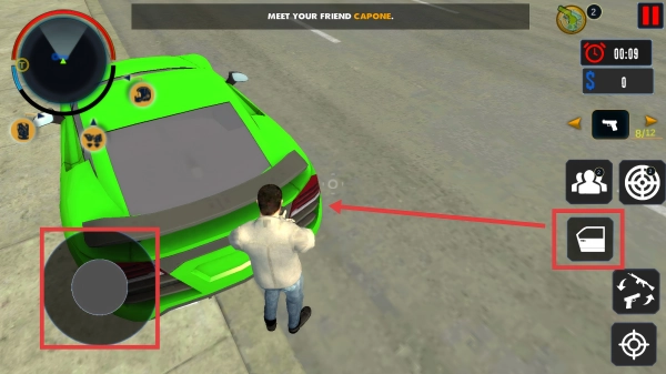 2、走到绿色汽车旁边,点击右侧车门的按键进入车内,通过左侧摇杆来控制角色移动,为前往任务地点做好准备。