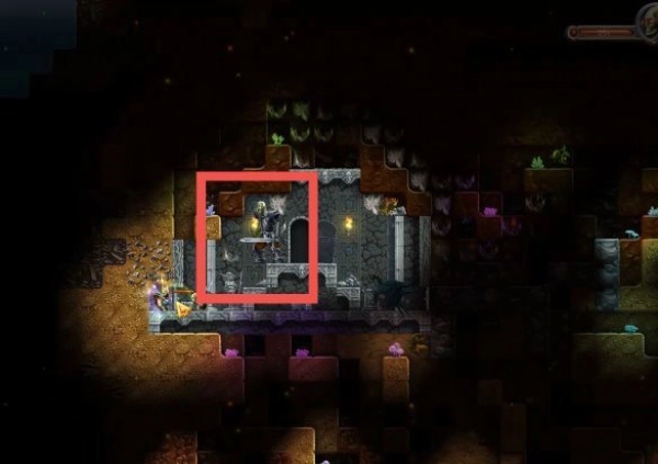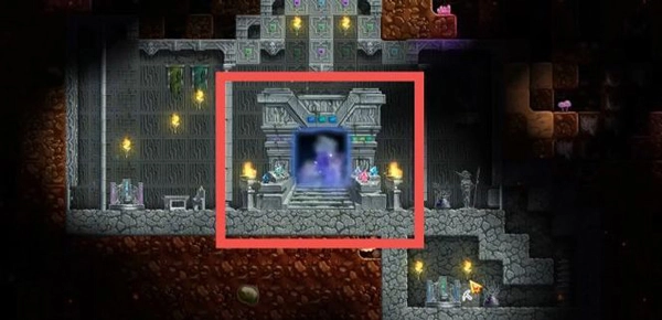 1、玩家需要向下挖掘,寻找一处被石头环绕、呈现四方形石圈的区域,其中有一个无法挖除的石台,该石台即为通关传送门的底座。