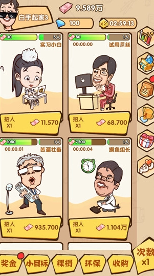 2、大量招揽各类员工为你创造收益,每次升级与募捐都能帮你提升收益水平。