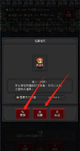 3、接着,点击底部的“更换”,当找到商人后,点击“招募”即可,如图下所示。