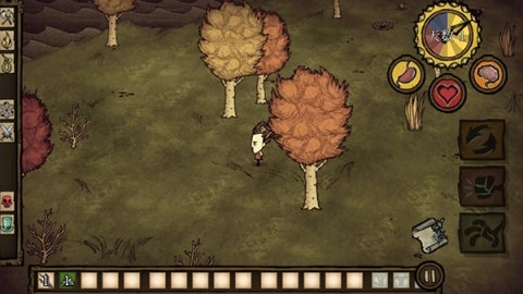 5、游戏正式开始后,左侧的控制键用于操作角色移动方向,右侧的按钮用于收集资源,玩家需要收集所有可用资源以应对饥荒。