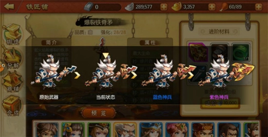 ③神兵锻造进阶白色到紫色,每进阶一次开启一格新的属性