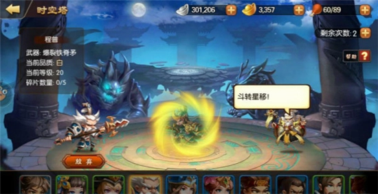 ①在时空塔选择需要锻造神兵的武将出战,胜利后即可获取一个碎片