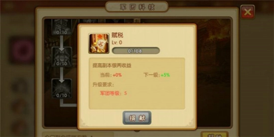 提示::军团的加入,所贡献的并不是没用,所以能贡献就每天贡献,军团科技也可以捐献,可以提升军机处副本的资源产出量