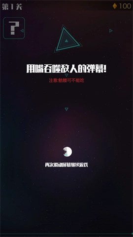 2、吞噬敌人的弹幕能够积攒能量,以此提升自身的能力。但需要留意躲避骷髅和敌人,不然会消耗生命值,毕竟你一共只有三条命。