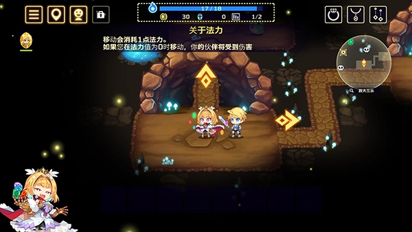 3、每次移动会消耗玩家1点法力值,法力值为零时行动将会扣血。