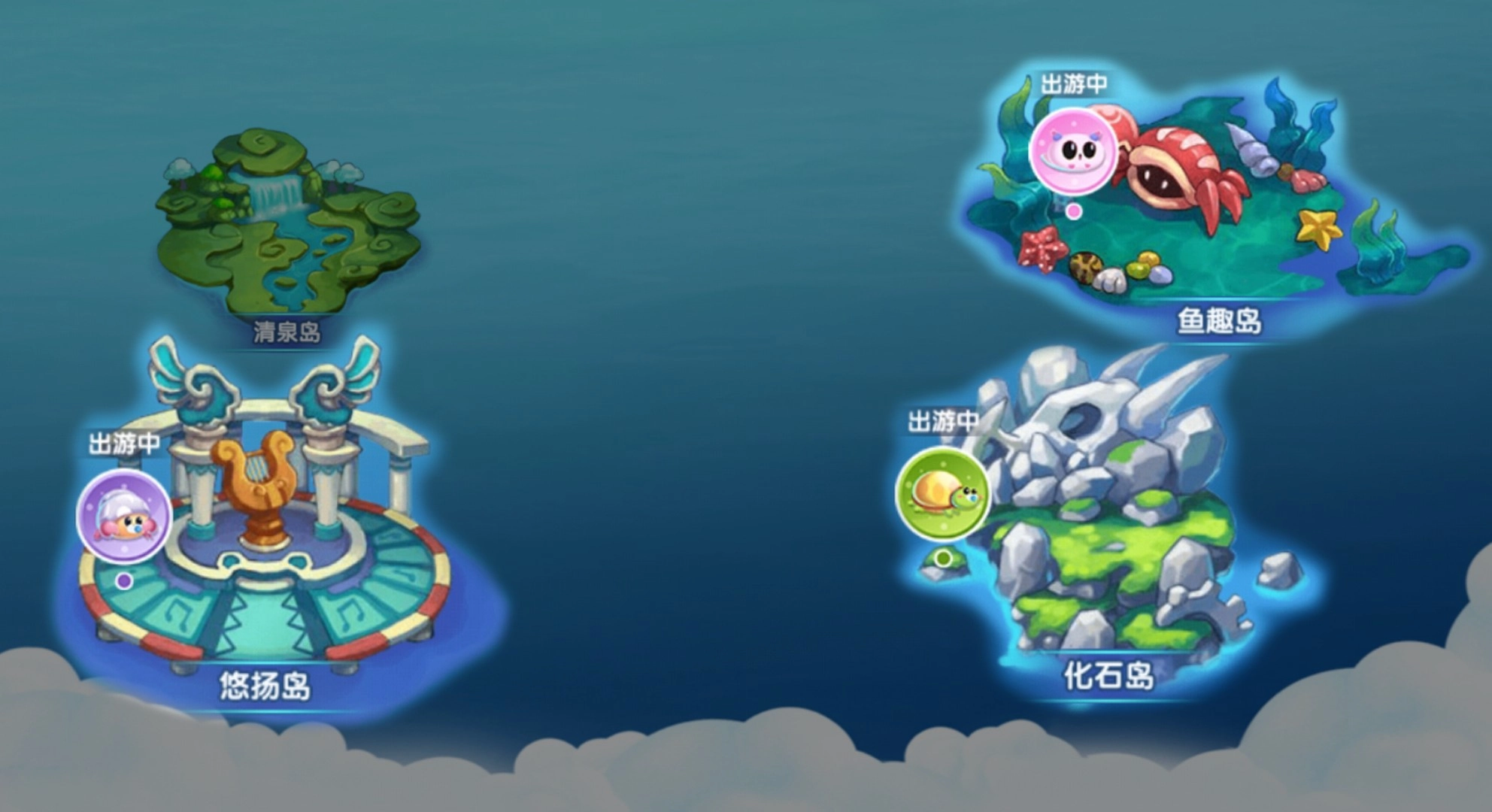 馆长点击想要去的小岛,选择想要出游的小鱼和幸运符就可以出游啦~