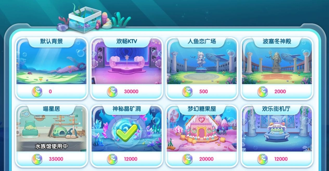 买了背景的馆长需要手动更换背景噢。更换背景的入口在鱼池右上角,