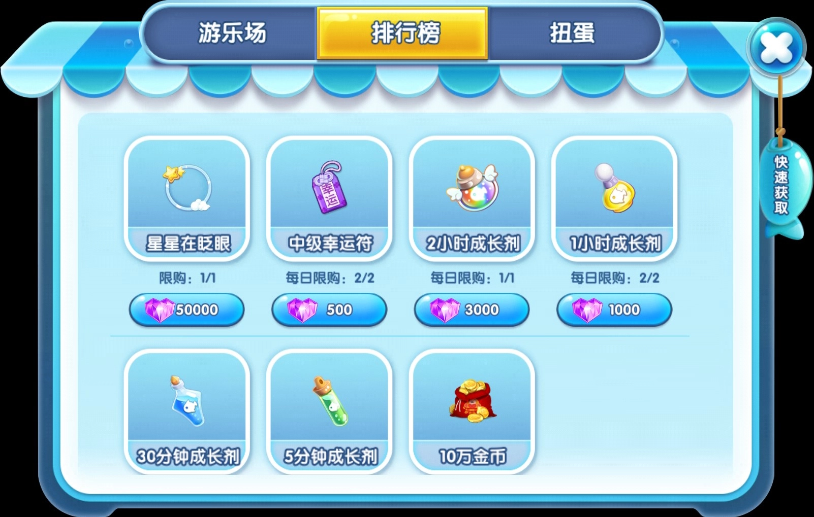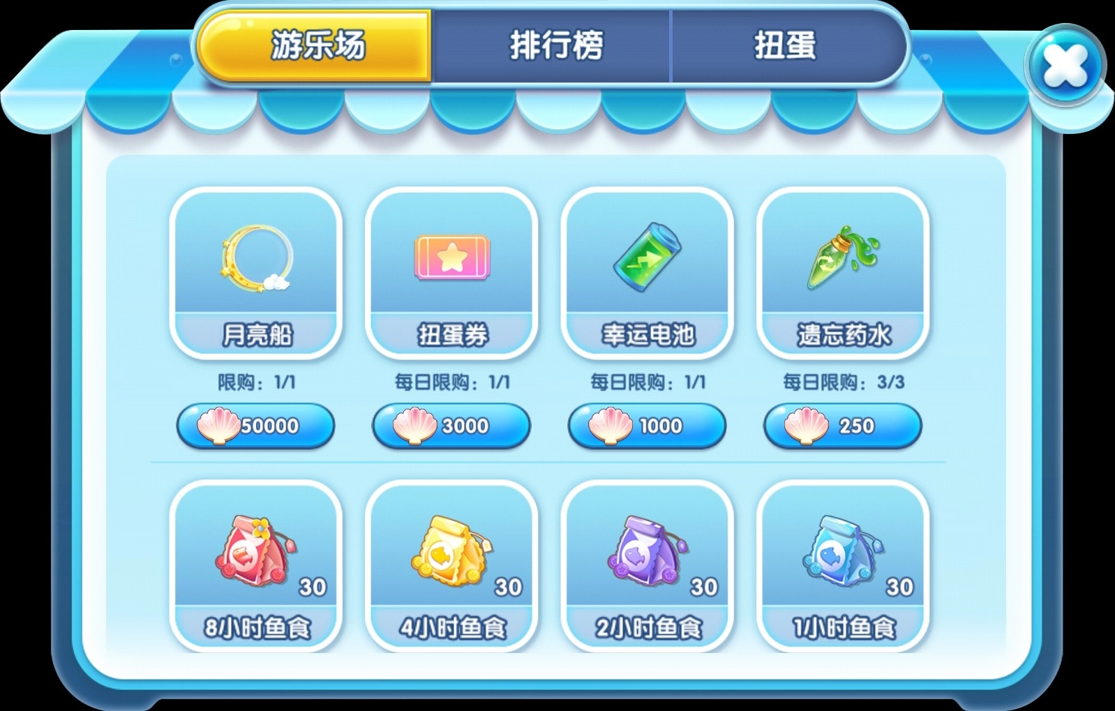 游乐场获得的贝壳和观赏榜的奖励都可以在兑换商店中换取道具噢~