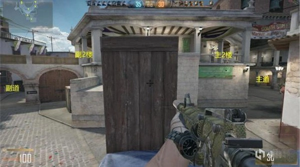 该点位视野优秀,可以同时兼顾主道和副道,缺点是没有适宜的掩体,唯一的掩体还是可被穿透的木板。为了避免自己成为靶子,建议灵活换点,在进点台阶处、点位侧方不断转点攻击敌人。
