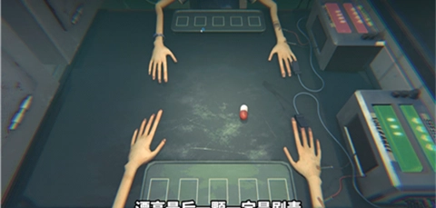 2、桌上的药品色彩斑斓,每一种都标着编号,却找不到任何说明书。有的或许是止痛药,有的说不定是剧毒物,更多的是用途未明、效果未知的新型试剂。轮到你行动时,你得从这些药物里选一粒吞下去,而对面的测试者也会在下一轮做出自己的选择。