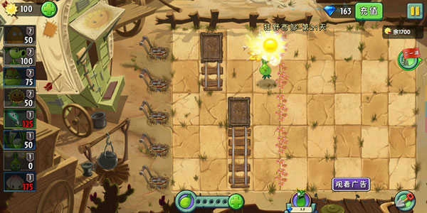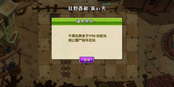 在这一关中,关卡的通关条件是让我们不得花费超过1750阳光,且不能让僵尸踩坏花坛。