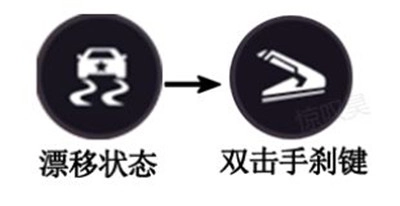 6. 甜甜圈漂移:主要用于炫技,操作方法为:车辆处于漂移状态且车速小于100km/h时,双击手刹键可进入甜甜圈漂移状态;车辆时速超过100km/h,自动退出甜甜圈漂移状态。