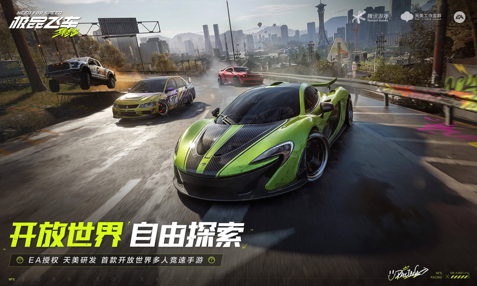 极品飞车集结正版原称极品飞车在线移动版,现正式定名极品飞车:集结,此游戏获EA正版授权,国内由腾讯天美研发,是一款深受喜爱与期待的全新开放世界多人竞速游戏。