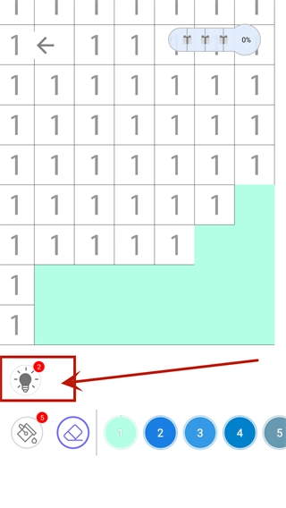 5、由于每张图片的难度存在差异,若在填色过程中遇到困难,可点击界面上的灯泡按钮,系统会提示对应的涂色区域。